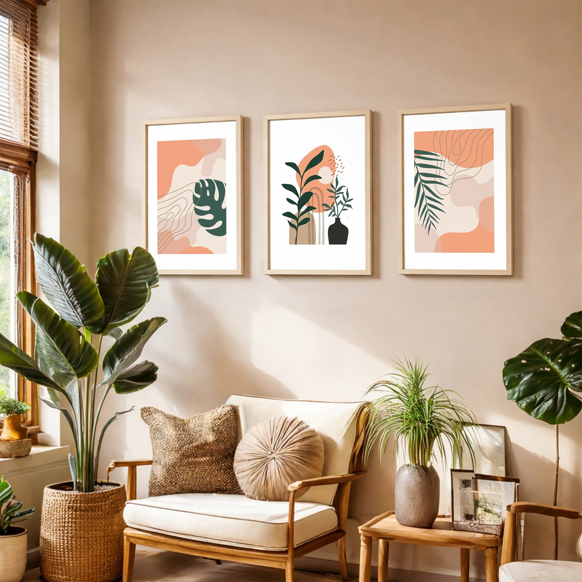 Modern Botanical Abstract Wall Frame Set of 3