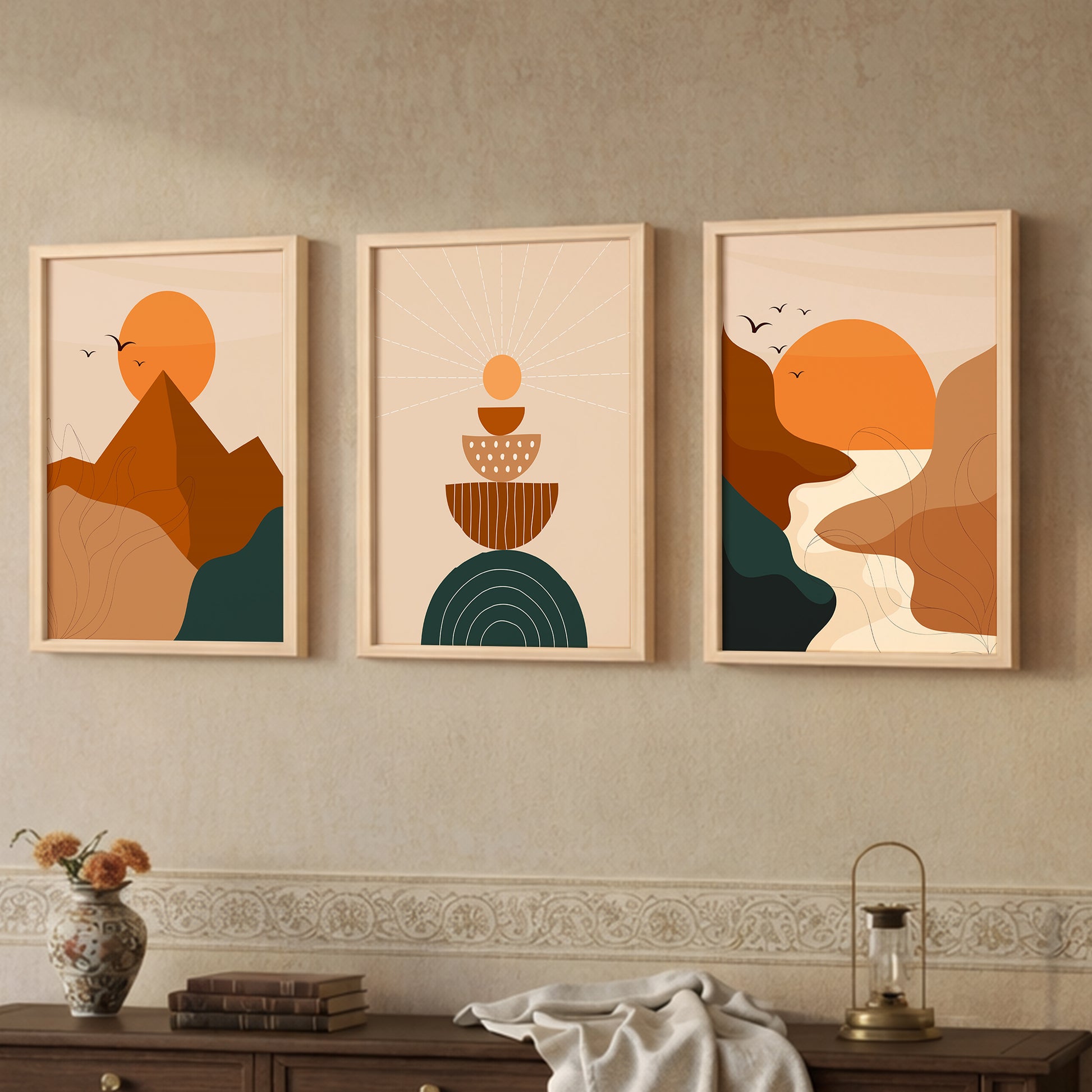 Boho Sunset Abstract Wall Frame Set of 3