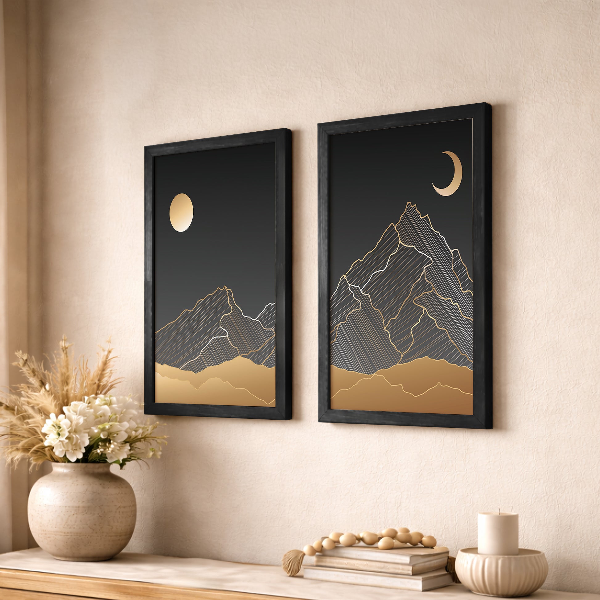 Golden Moon Mountain Minimal Wall Frames Set of 2