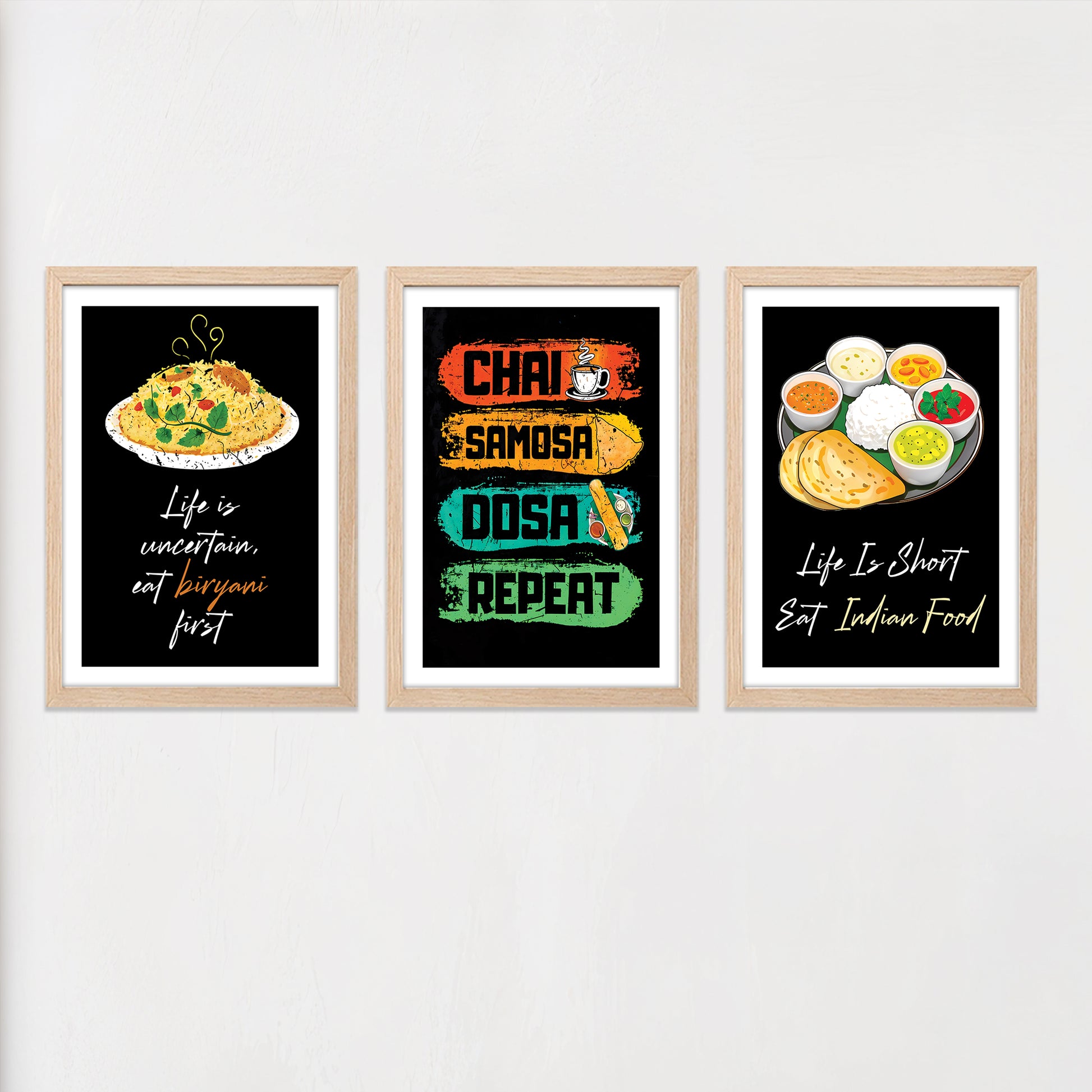Indian Food Quote Framed Wall Art Set of 3
